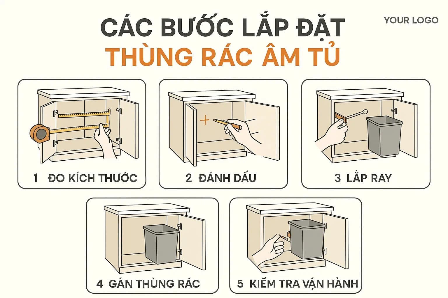 Hướng dẫn cách lắp đặt thùng rác âm tủ bếp