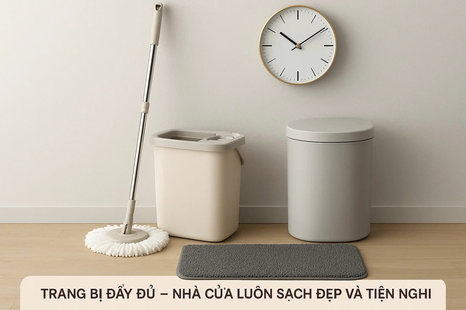 Cây lau nhà thông minh phát huy hiệu quả tốt nhất khi kết hợp cùng thảm lau chân để hạn chế bụi bẩn từ ngoài vào, và thùng rác nắp kín giúp rác không bay vương vãi ra sàn sau mỗi lần dọn dẹp.