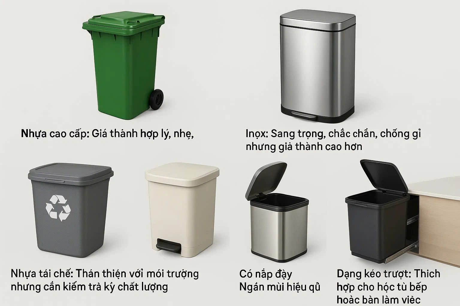 Một chiếc thùng rác phù hợp sẽ giúp bạn phân loại rác hiệu quả, dễ dàng vệ sinh và giảm thiểu mùi hôi, từ đó bảo vệ sức khỏe cho cả gia đình.